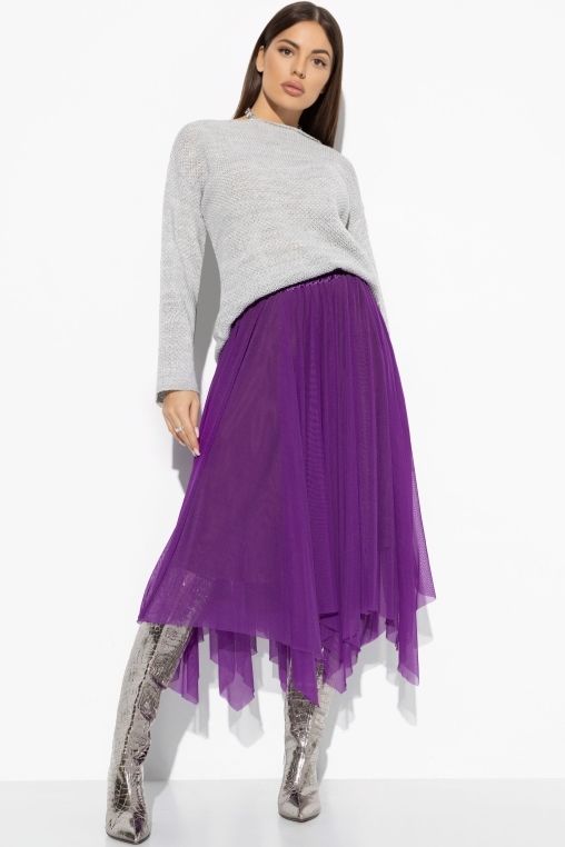 Фиолетовая юбка из сетки на подкладе из трикотажа «вискоза» и «сатин креша» от компании Charutti. Модель свободного силуэта. Притачной пояс-резинка. Идеальный выбор для создания стильного образа.
