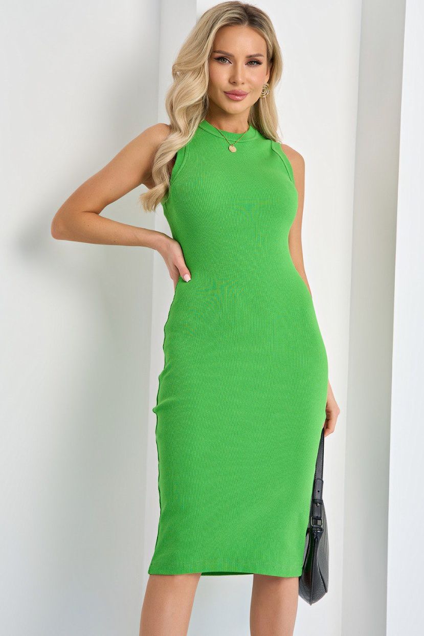 Платье-футляр трикотажное зелёное без рукавов