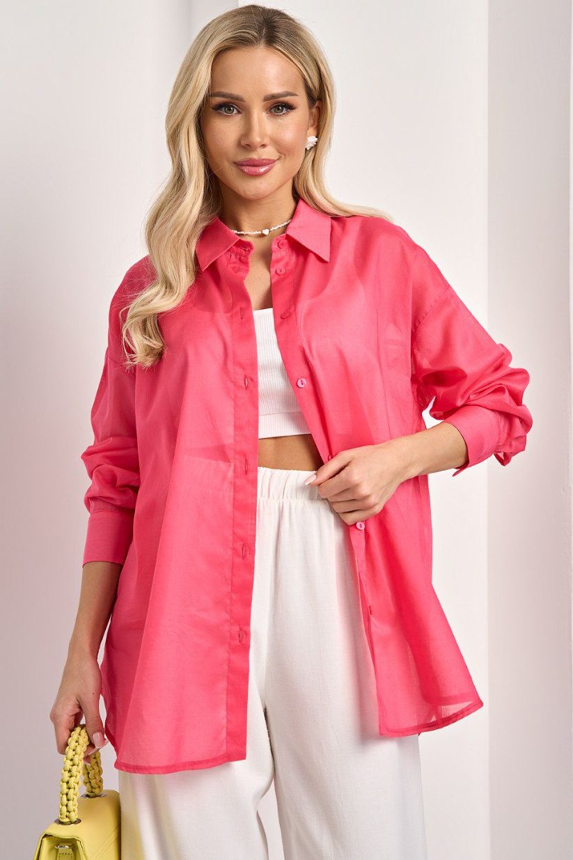 Рубашка розовая из хлопка от компании Jetty. Изделие прямого силуэта, отложной воротник-стойка. Застёжка на петли и пуговицы. Длинные рукава на манжетах. Слегка удлиненная сзади. Идеальное решение для создания стильного образа.