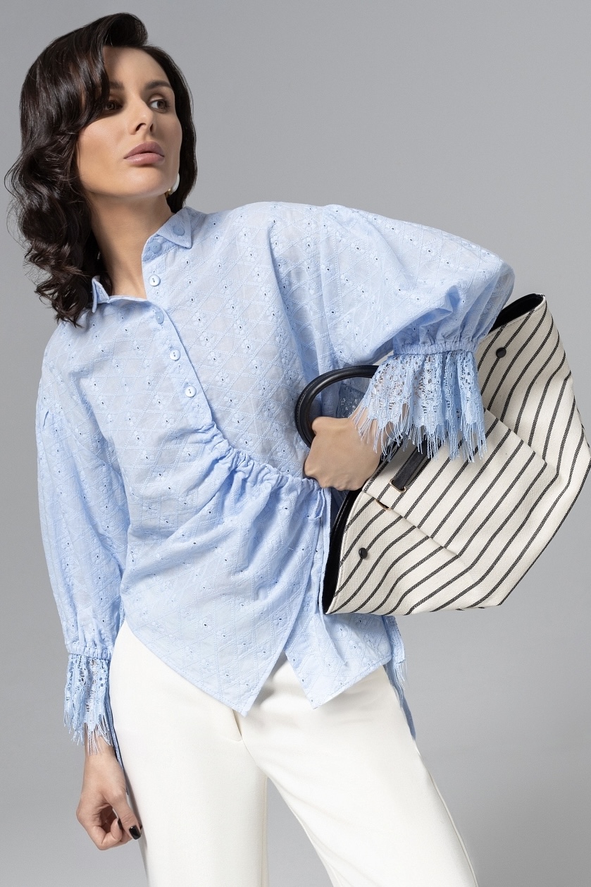 Рубашка голубая с ассиметричной драпировкой и кружевом