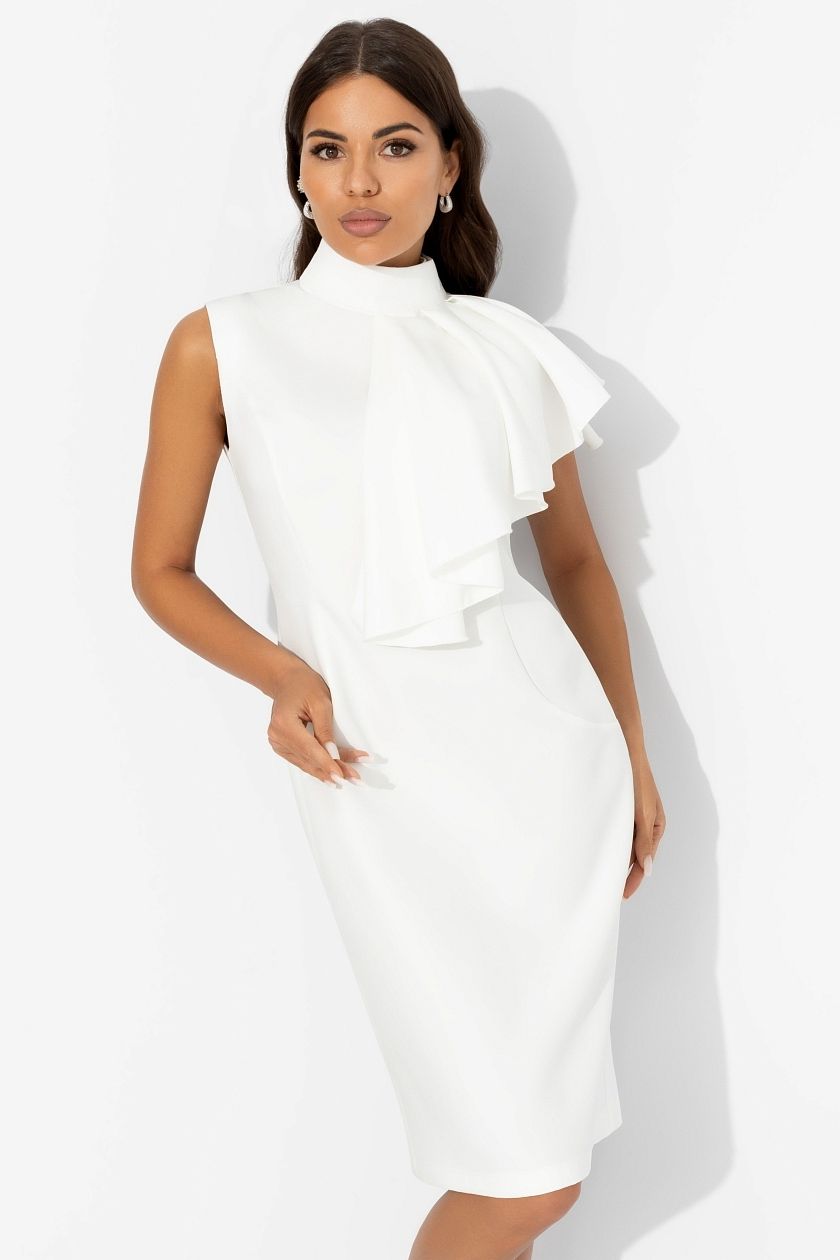 Платье-футляр белое со съёмным объемным декоративным воланом