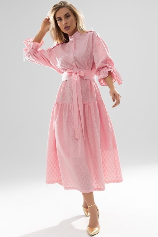 Платье розовое из шитья с поясом