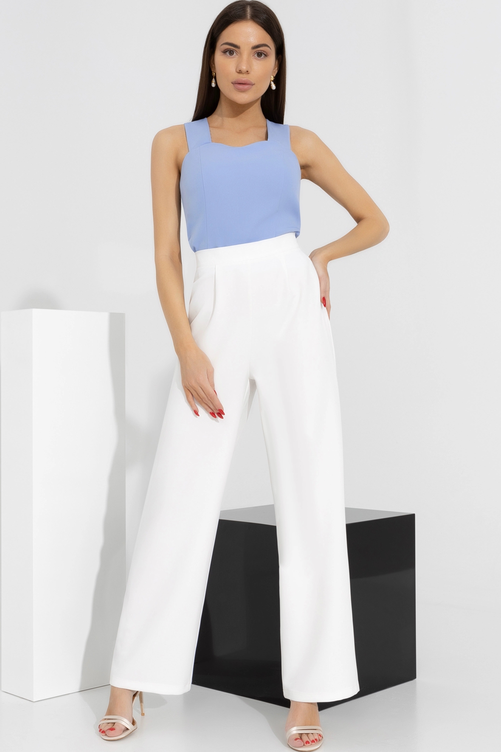 Брюки белые с защипами