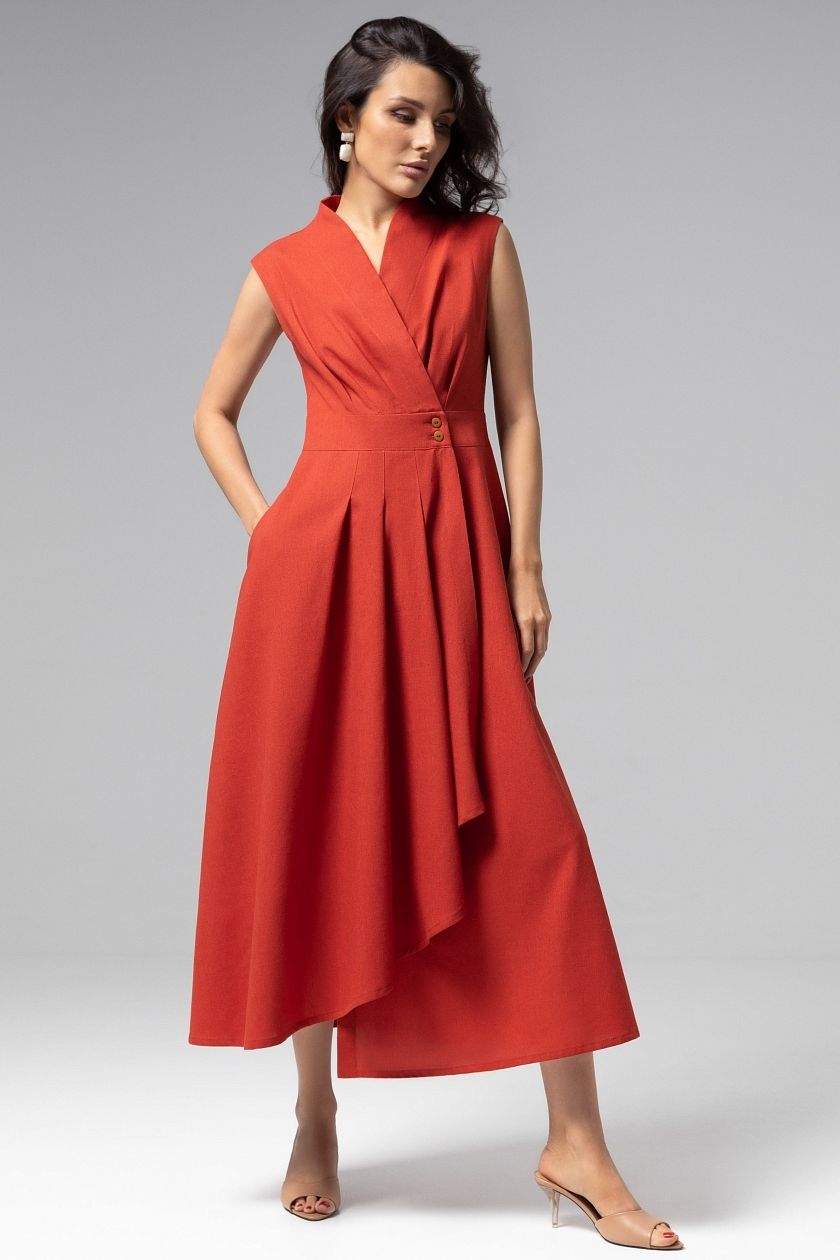 Платье длинное с драпировкой и карманами