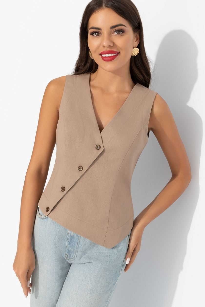 Жилет бежевый льняной с асимметричной линией пуговиц