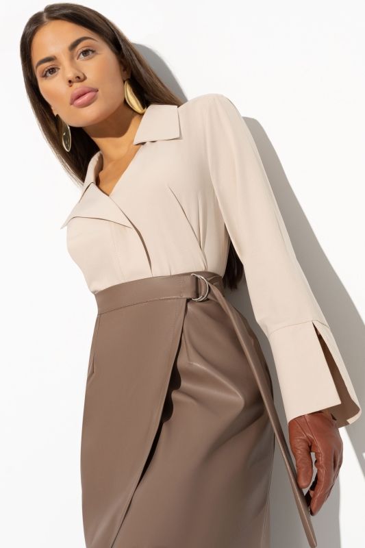 Блуза бежевая с разрезами на рукавах