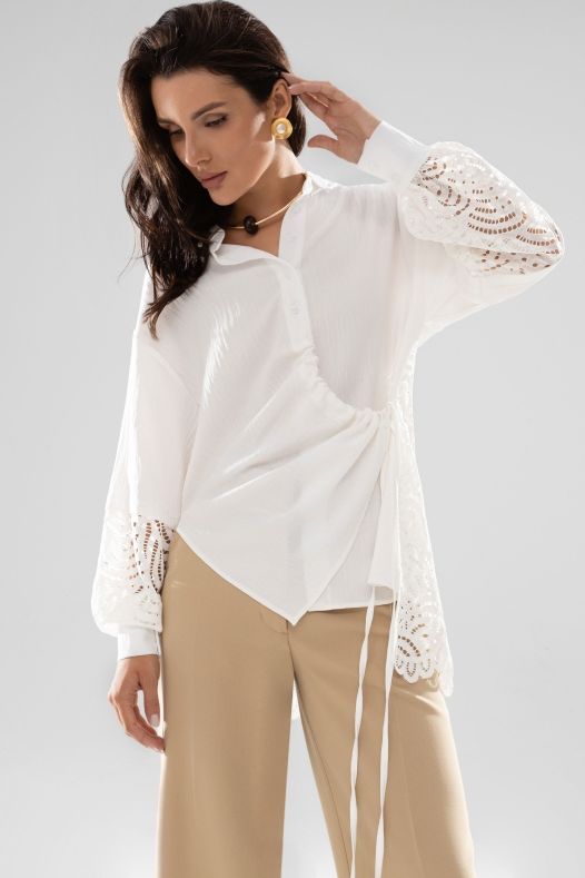 Рубашка белая из шифона с фактурным рисунком Эрина №2