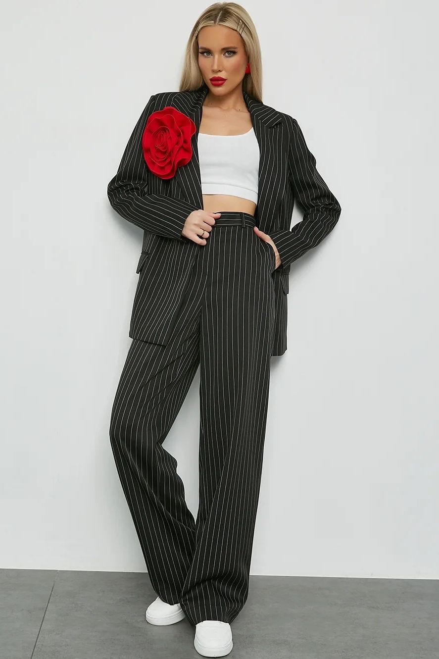 Брюки чёрные в полоску с карманами