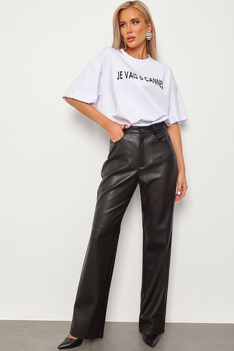 Брюки кожаные чёрные утеплённые