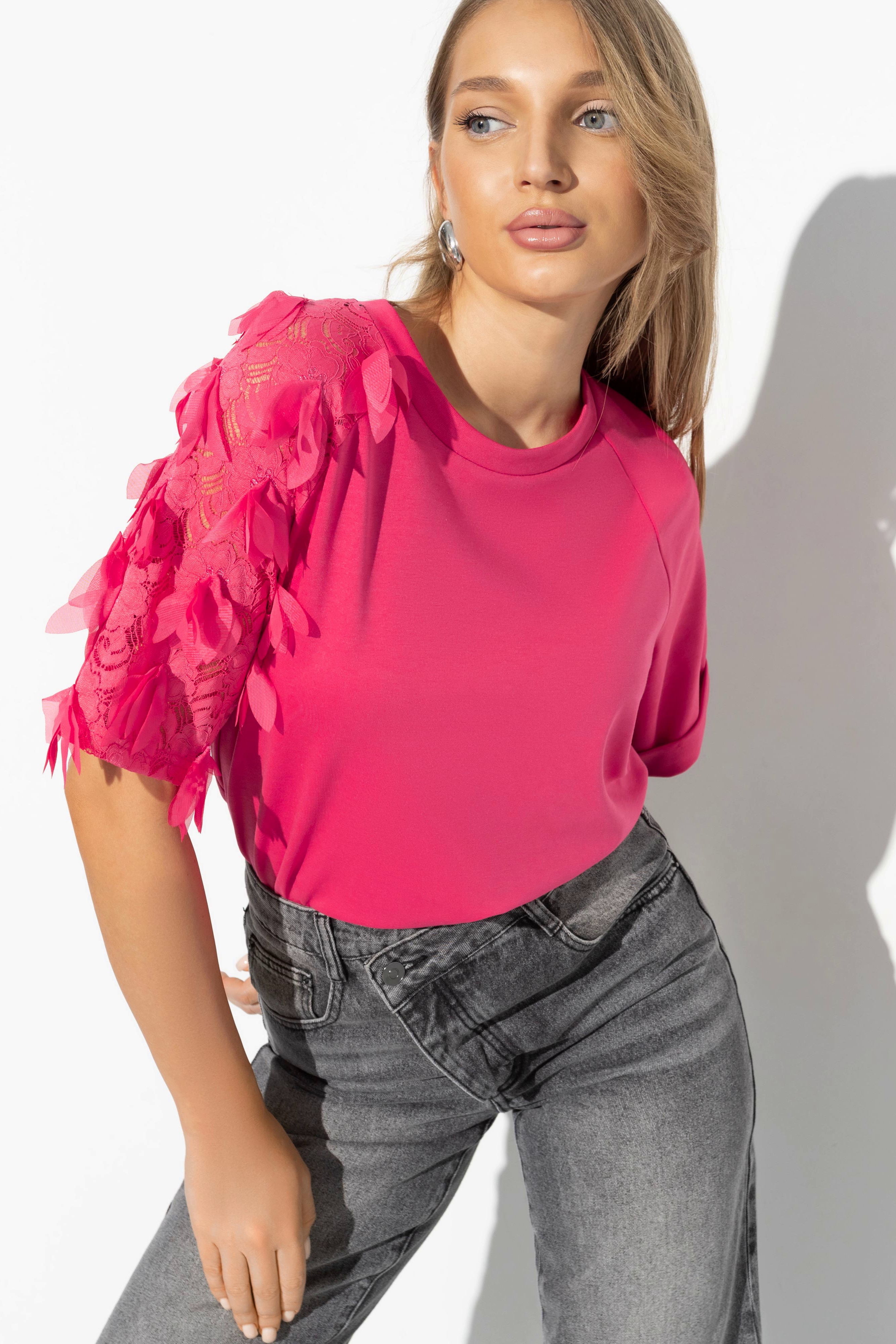 Футболка с кружевным рукавом