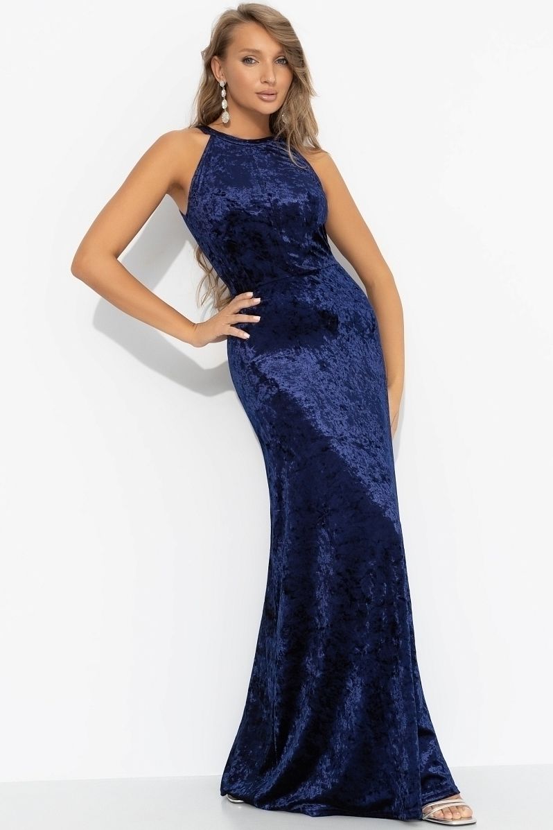 Платье синее бархатное с акцентной спинкой