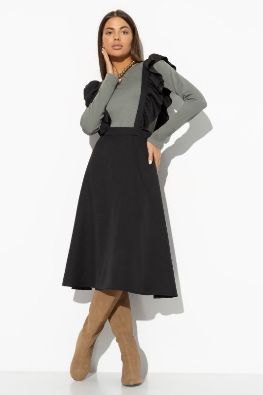 Комбинированное платье-футляр с имитацией накидки 48 размера