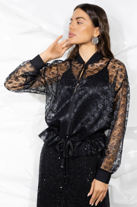Бомбер нарядный чёрный из кружева